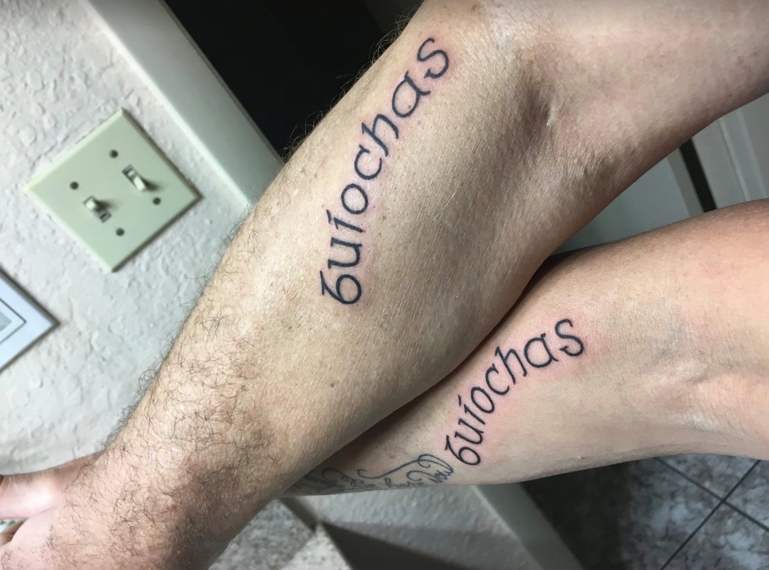 I love ink. I didn’t start until I was 50 and all of mine are special to me. But Tim was a tattoo virgin. We always said how grateful we were for having met. Also, Tim was Irish. I found the Old Irish word for gratitude and we got it inked in the same place on the same arm.
